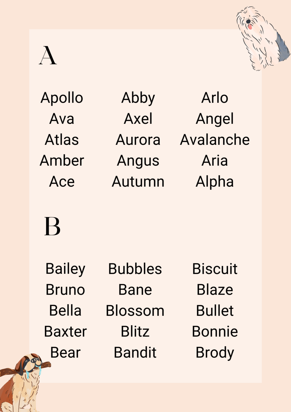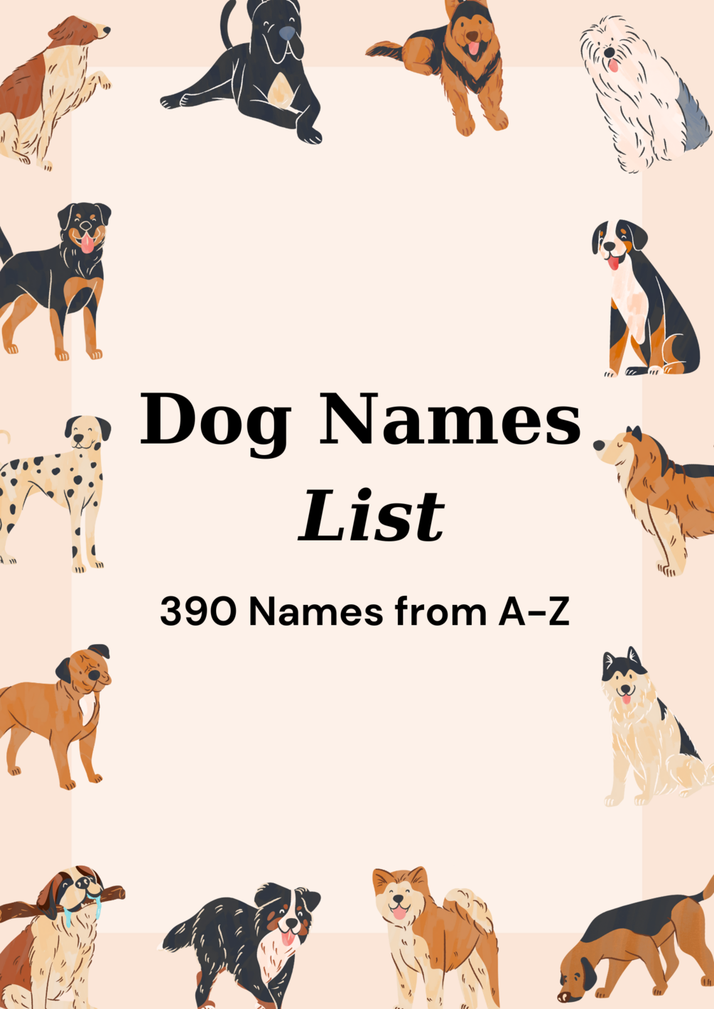 ๐ Unleash the magic with 390 handpicked dog names from A to Z, curated to capture the essence of every tail-wagging personality. From charming Apollo to adventurous Ziggy, we've crafted a canine compendium that's as diverse as the furry companions it serves.
